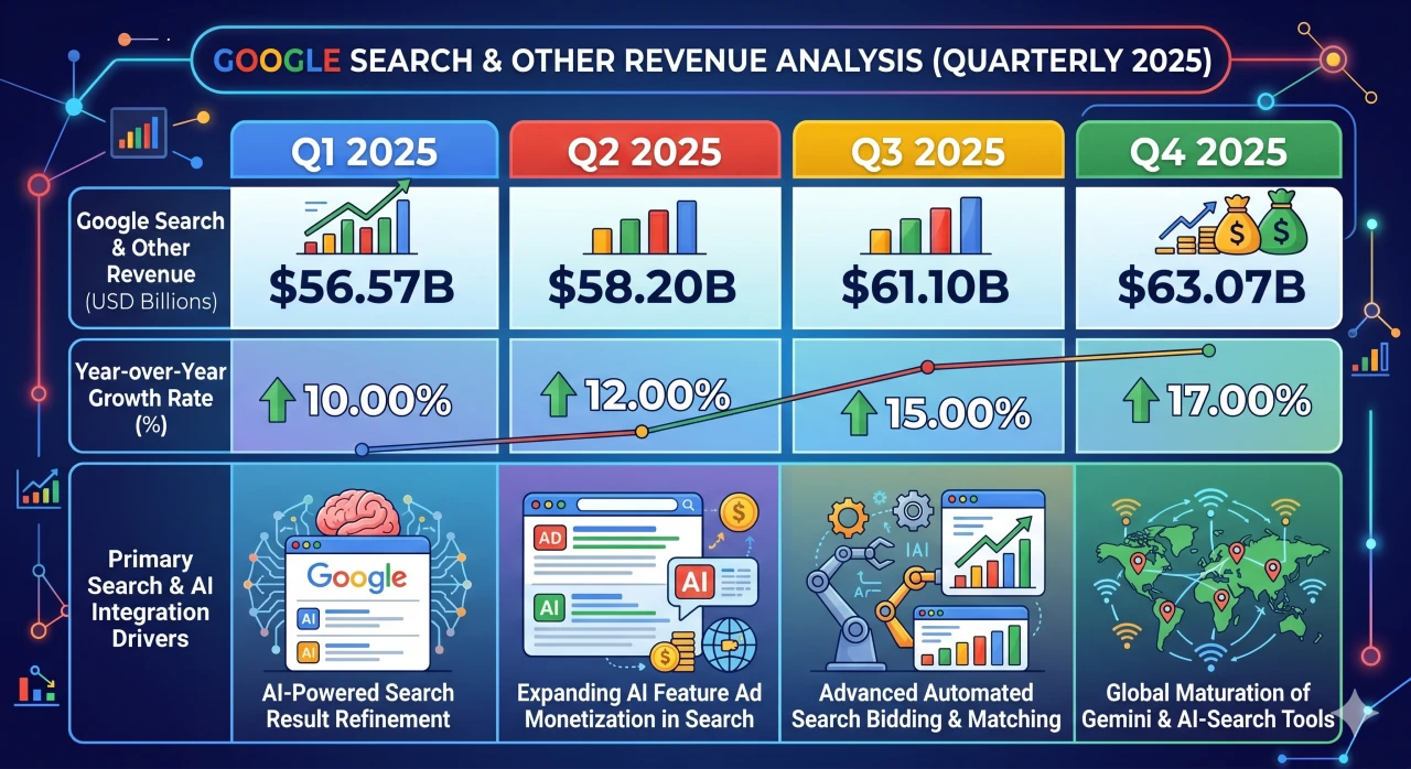 In the final quarter of 2025 alone, Google Search revenue saw 17% year-over-year growth. Why? Because AI isn't just changing how people search — it's expanding the entire market. Queries in AI Mode are significantly longer and more descriptive than traditional searches, and through a process called query fan-out, a single query can trigger dozens of related sub-queries behind the scenes. This opens up vast new layers of "intent" for businesses to capture.